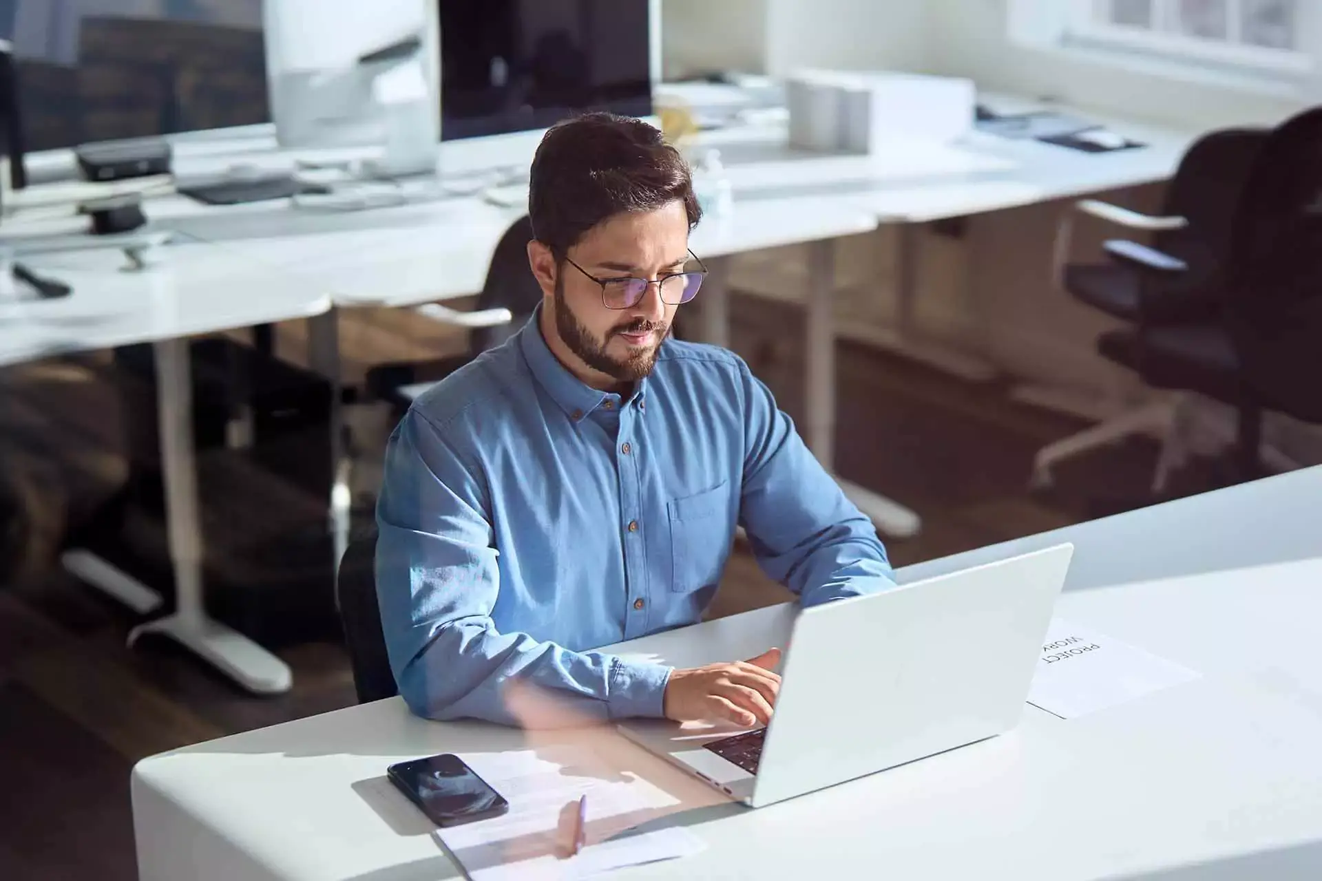 A business professional managing work on his laptop, utilizing Lx Contracts